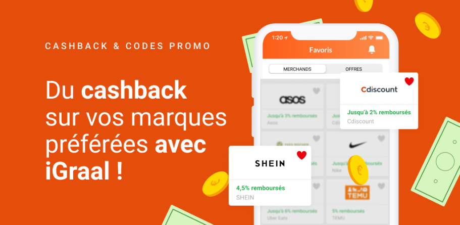 Vous pouvez aussi récupérer des euros sur vos achats en ligne grâce au Cashback et codes Promos.